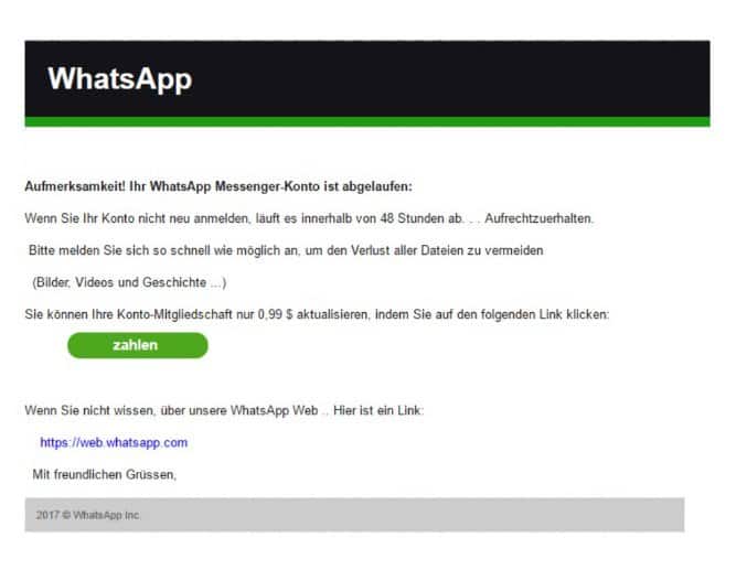 Davor wiederum bekam ich eine warnende Elektropost von WhatsApp – seltsamerweise mit dem Impressumskopf, den ich aus meiner Bestellhistorie mit einem großen Merchandiseshop kannte. Und auch da wurde ich stutzig.
